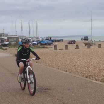 That part was accomplished with ease and we were still feeling fresh, which was just as well when we had only covered a fraction of the journey. The next part of the journey took us on to more bridleways than smooth cycle paths and certainly made for a more difficult, hilly and tiring ride. It was with relief that we arrived at Heathfield and after stopping for some well needed refreshments we headed off on the lovely, smooth, quiet, Cuckoo Trail. It was a much easier ride for the next 14 miles and soon we were approaching Hampden Park in Eastbourne. Leaving the cuckoo trail behind, we cycled the last couple of miles to the seafront where we were met by Mum and the promise of fish and chips.