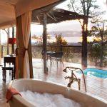 The Elephant Camp offers exclusive suite accommodation for 24 guests in 12 luxury tented suites, each boasting a private plunge pool and viewing deck, ensuring that wherever guests may be, the exquisite scenery is just a glance away. Even the bath offers an unparalleled view of the horizon. The stylish furnishing and décor has been specifically selected to capture the beauty of the natural environment, retaining the authenticity of the African wilderness. All suites are gorge facing, and during sunrise and sunset, the cloud of mist that hangs over the rainforest is illuminated by an array of deep colours that merge between red and orange.