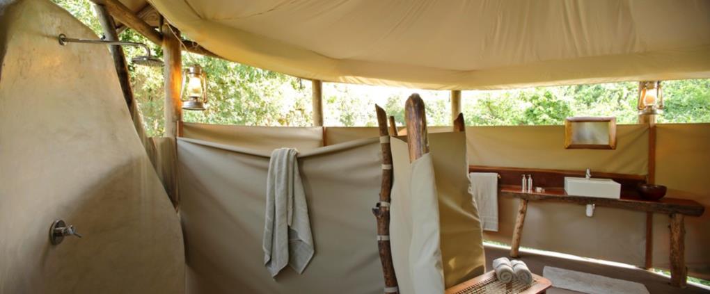 The safari tents are spacious enough for full-sized beds, dressing area and writing desk with plenty of charging points and mains electricity. A door leads into a shaded open-air bathroom with hot shower, flush toilet and basin. The tents also have mosquito nets and electric fans as well as fully gauzed windows. Thre is also a family tent which has a double bed and two single beds, and one large en-suite bathroom, comfortably sleeping a family of four.