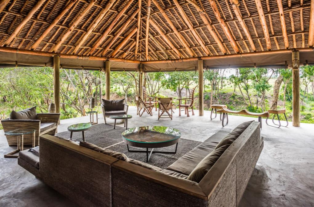 The camp lounge and dining area overlook a seasonal river and the surrounding plains, and from here guests can enjoy access to iMac computers and complimentary Wi-Fi.