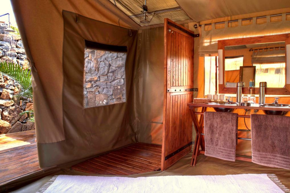 The tents are all en-suite with both indoor and outdoor showers with hot running water and flush WCs. They also have private verandas with a day bed.