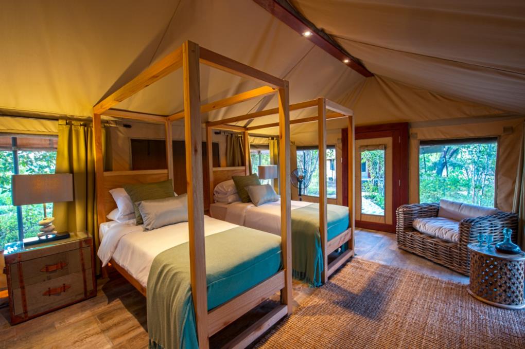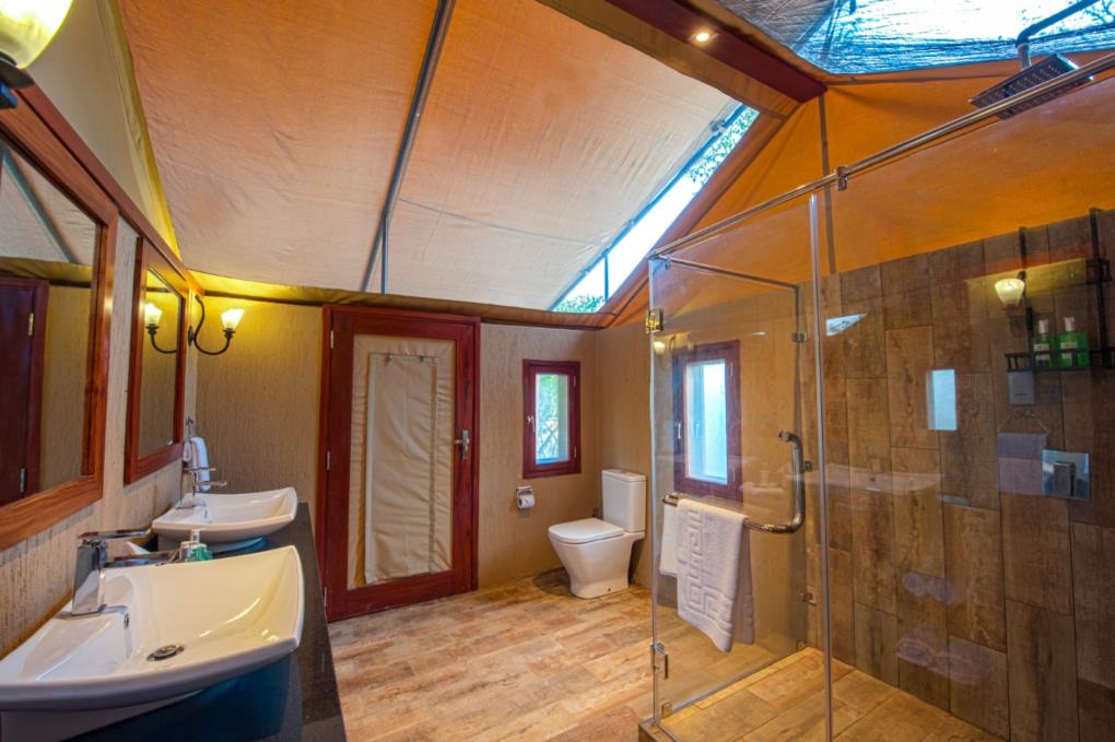 All the tents have a fan, mini bar, complimentary Wi-Fi, a hair dryer, mosquito nets, private deck, and a room safe. The en-suite bathrooms have a flushing WC, a double vanity basin and a rain shower.