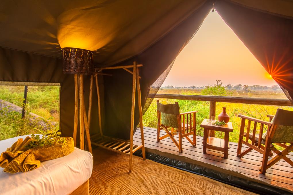 The tents have a private elevated deck/balcony. The bathroom is semi-detached with an al fresco bucket shower, WC and hot/cold running water.