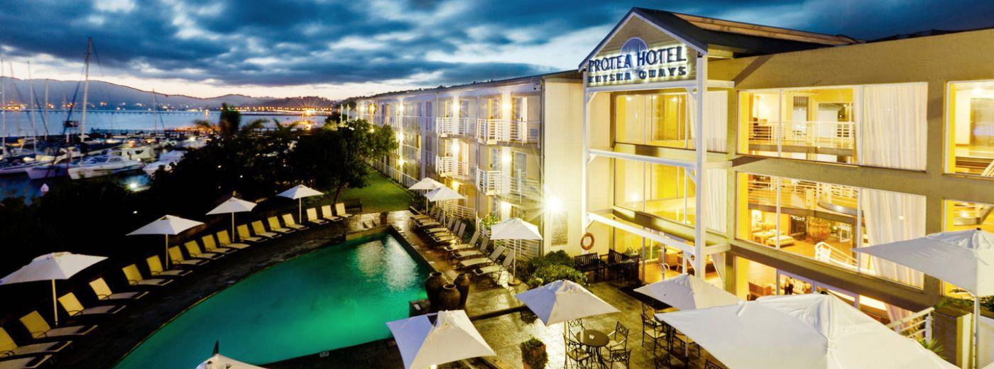 Protea Quays at Knysna - clean, efficient, bit like a Premier Inn - but OK for the money and well located for restaurants etc