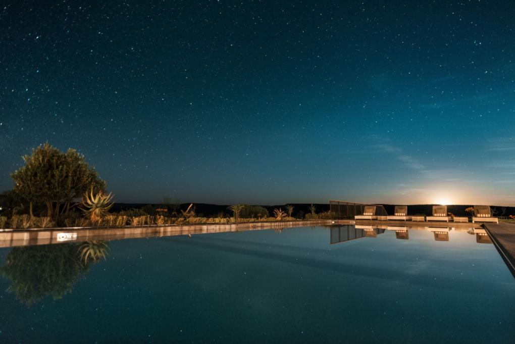 The main areas consist of a large open plan lounge with a fireplace, a bar, a dining room with indoor and outdoor seating, a swimming pool with a shallow end especially for younger guests, and a boma overlooking the Bushmans River.