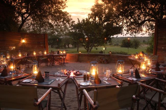 There is an attractive outdoor swimming pool which is ideal for cooling off after your morning game drive, or relax in the comfortable upstairs lounge and library area. These all overlook the waterhole which is floodlit at night, enabling you to watch some of Africa's most impressive wildlife coming down to drink. Full English breakfasts and lunches are served on the veranda and dinner is either served in the dining room or in the starlit boma, warmed by a roaring log fire.
