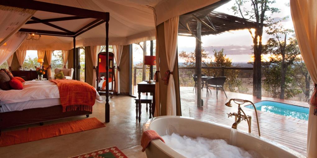 The main areas of both Elephant Camp Main and Elephant Camp West consists of the bar, dining room, library, spa, curio shop and swimming pool.