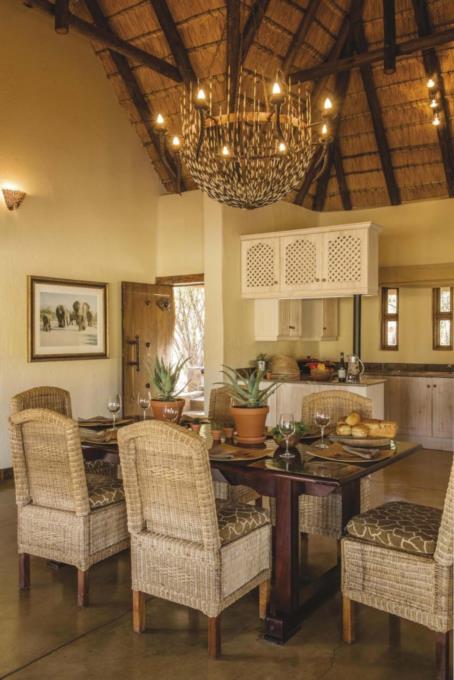 The 'Colonial African chic' main thatched lodge includes a lounge, dining room and a well-stocked bar with an impressive rim flow pool that overlooks a waterhole, all interlinked by a wooden deck that leads to the boma area.